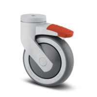Rueda giratoria con freno total trasero: soporte y ruedas fabricados con materiales sintéticos de alta calidad.